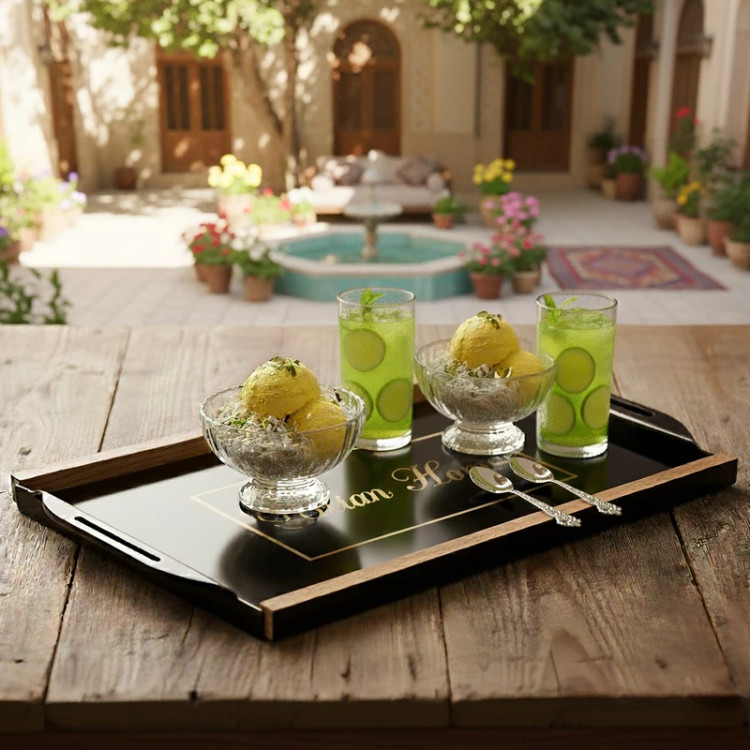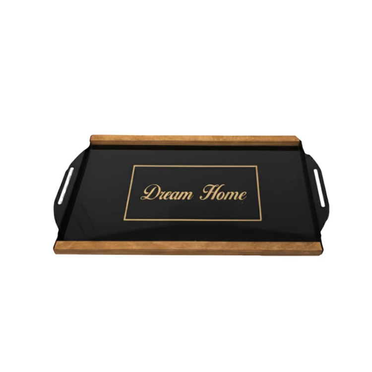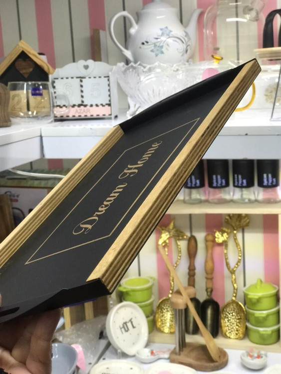 سینی فلزی دسته چوبی dream home