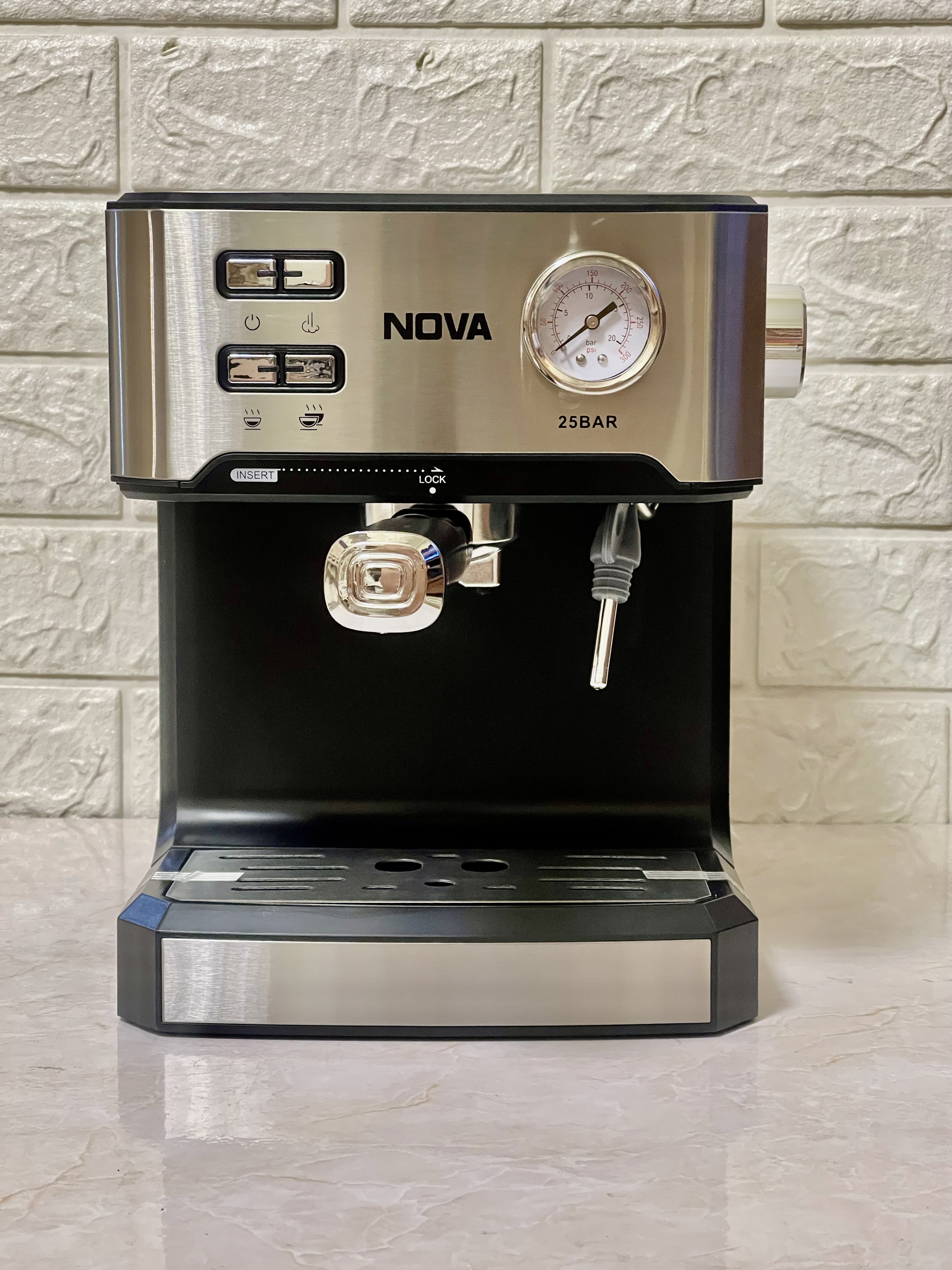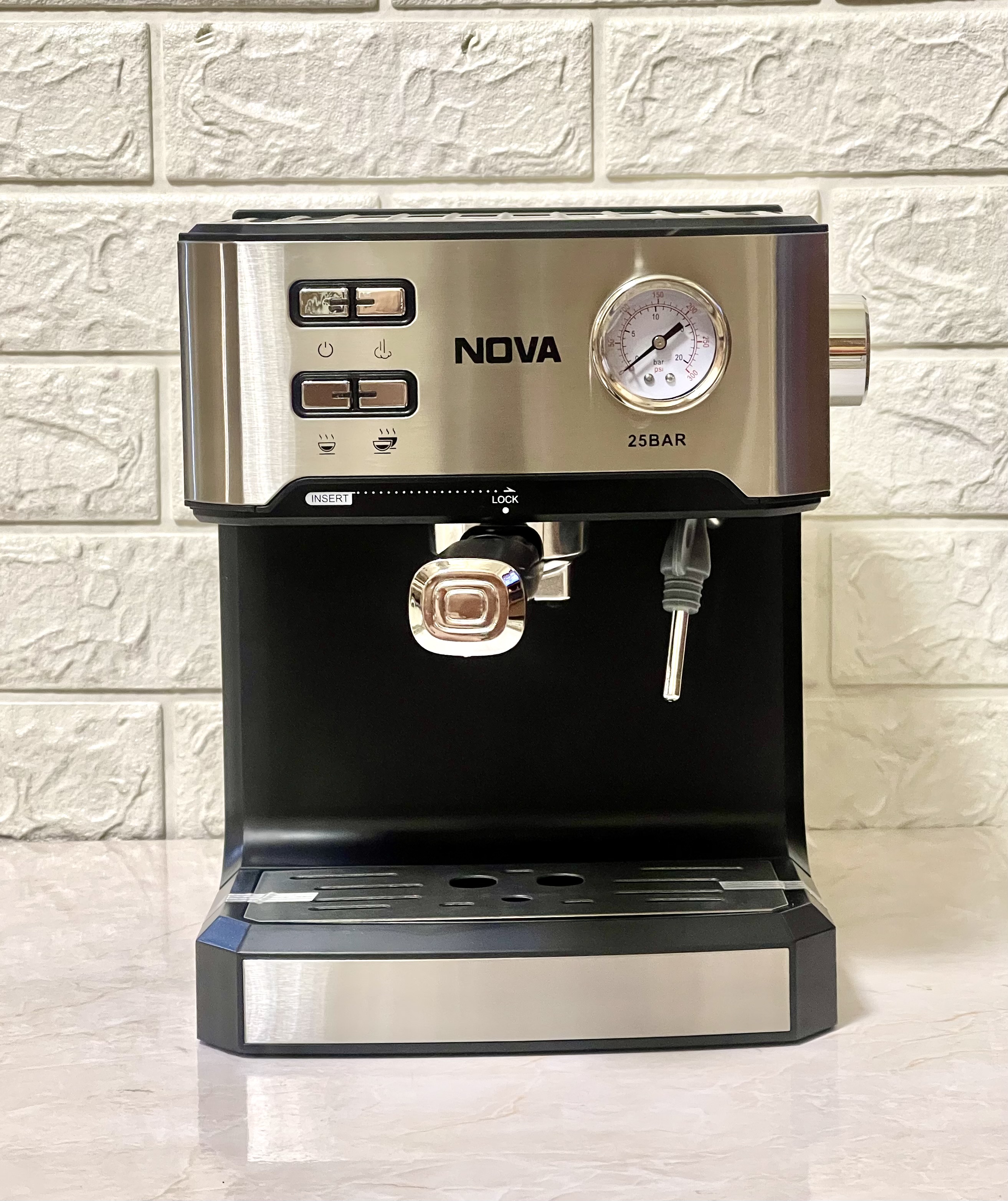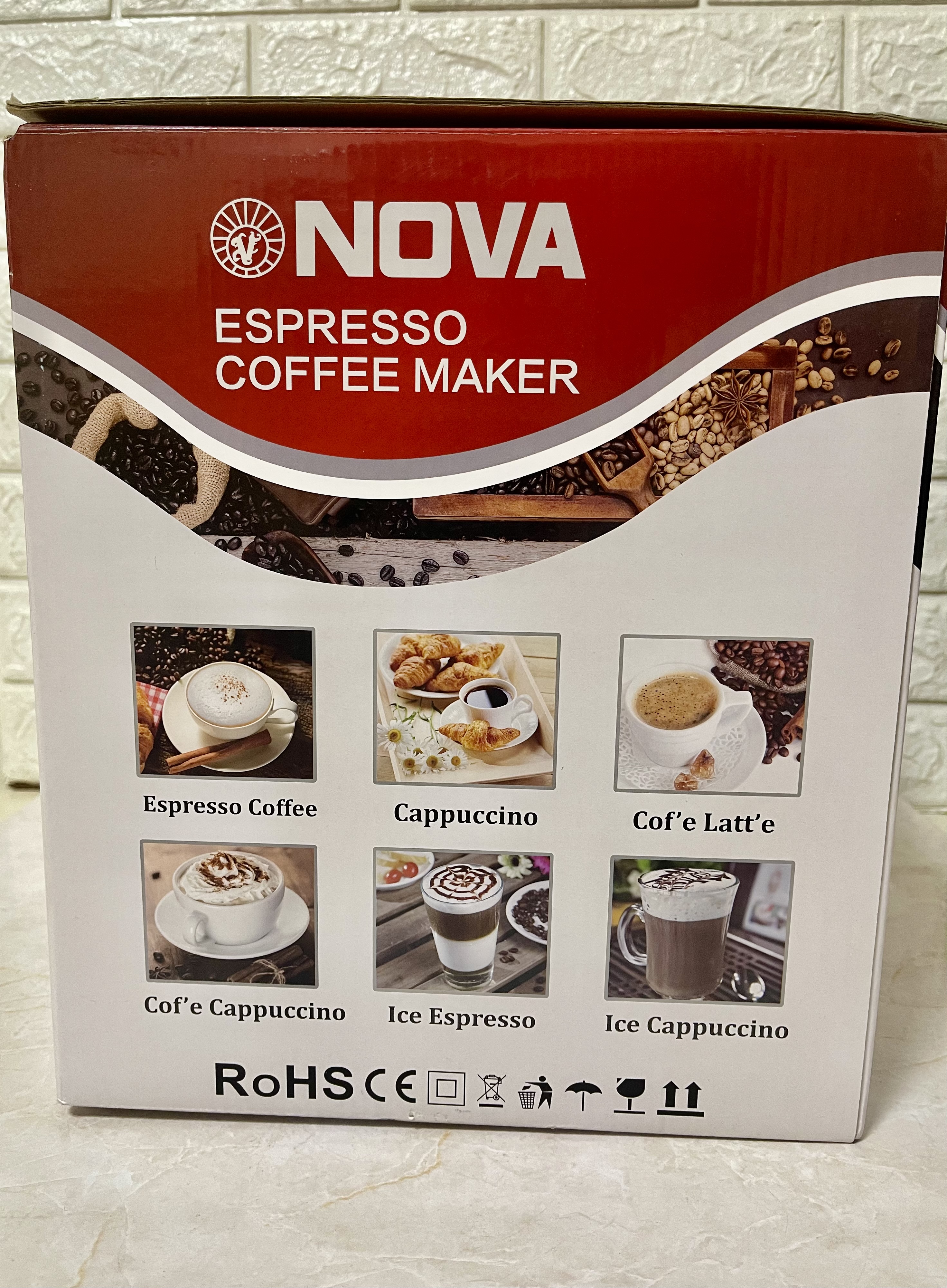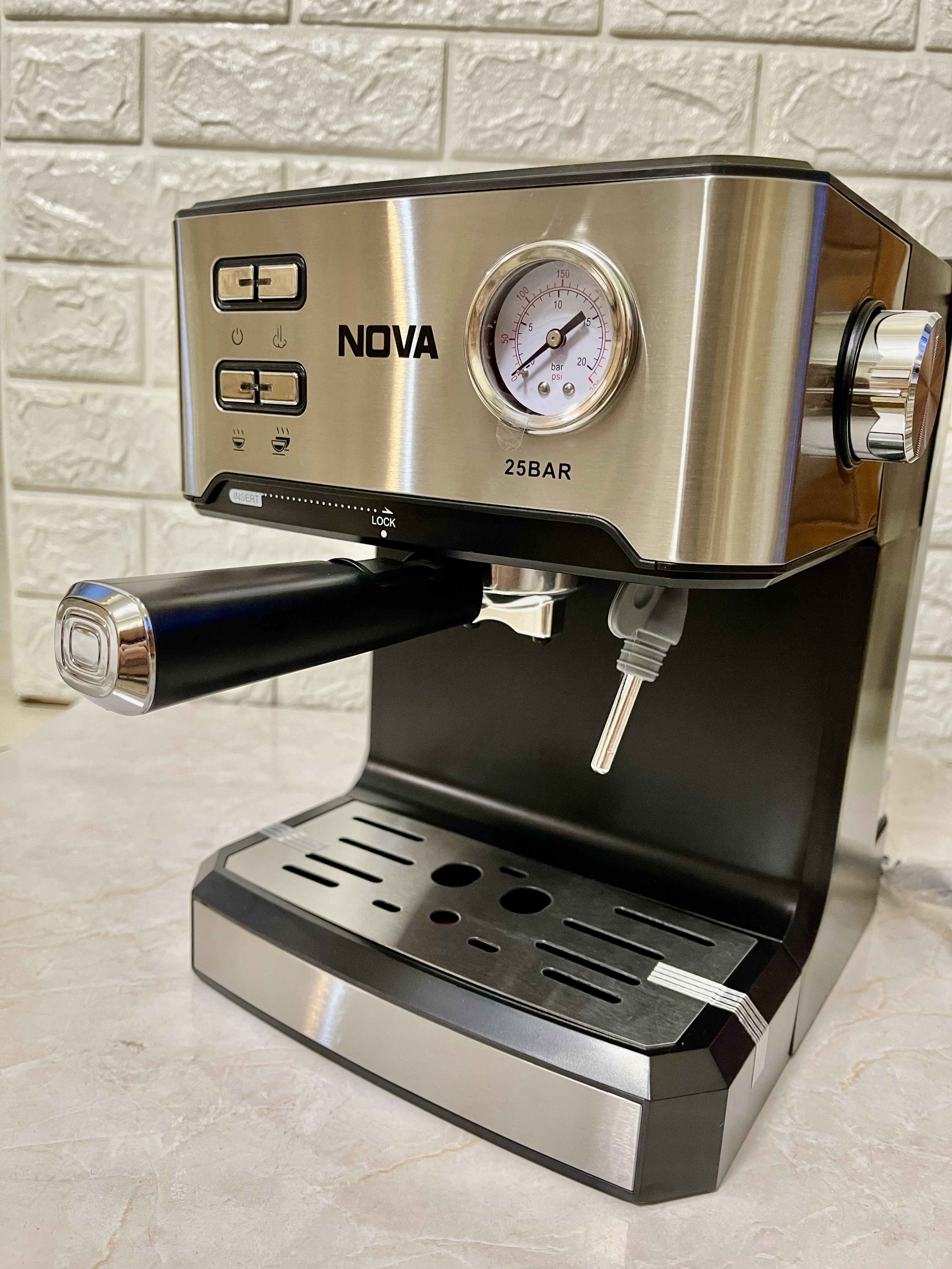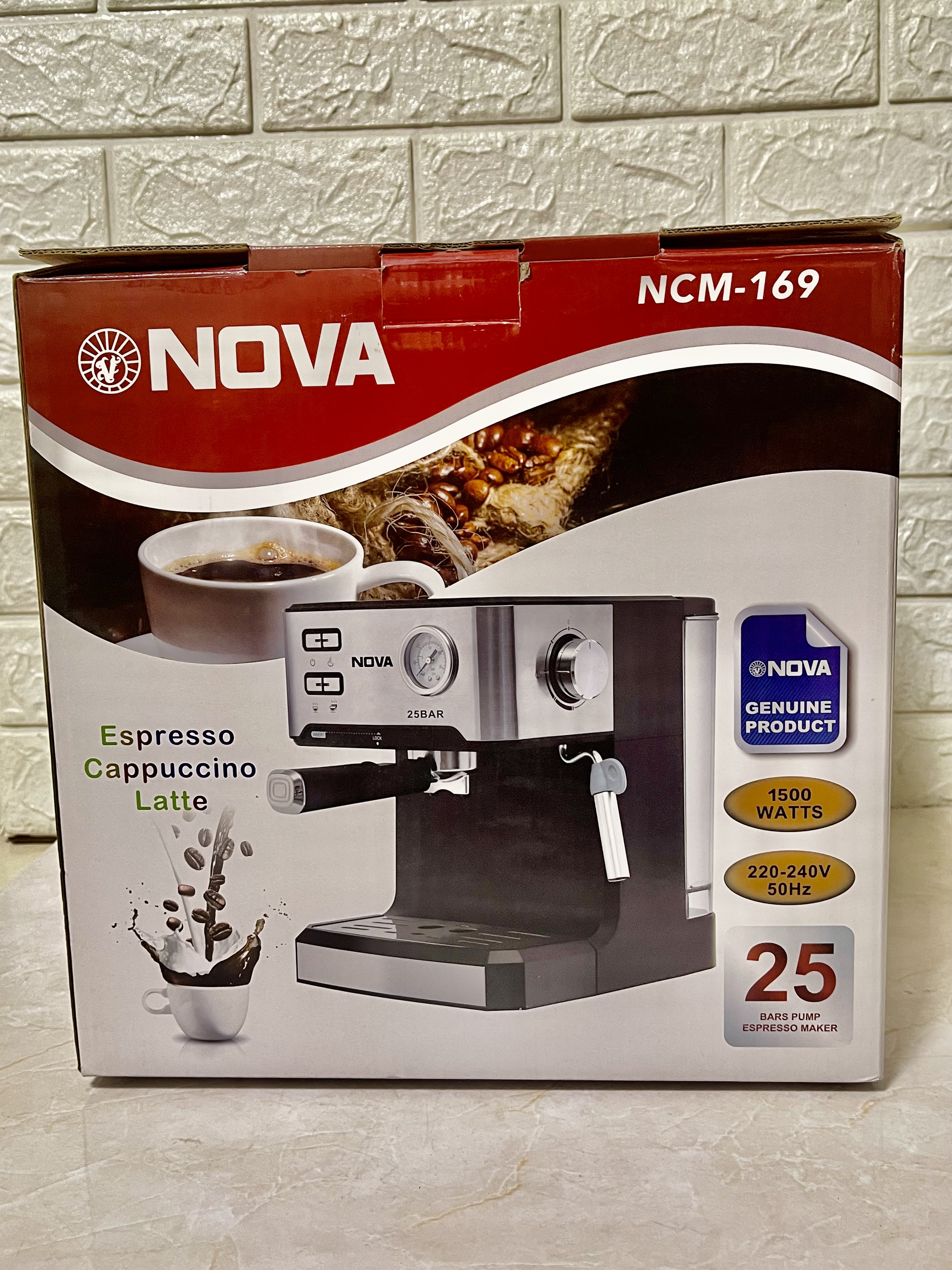 اسپرسوساز نوا مدل NCM-169 دارای ضمانت یکساله تعویض قابلیت سرو۱۵فنجان قهوه در خریدار استفاده 25 Bar 1500وات 220-240 ولت